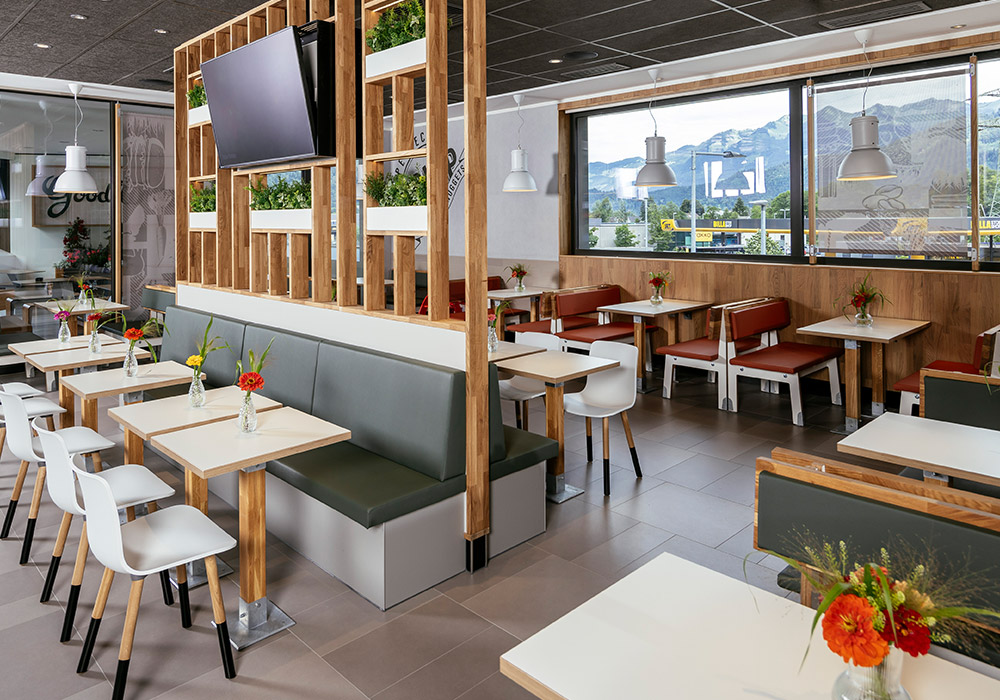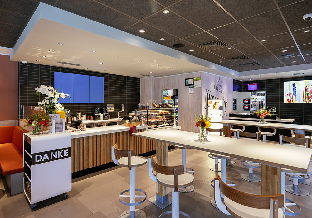 Rebuild: Abbruch des Bestands und Neubau eines 2-stöckigen McDonald’s Restaurant mit Terrasse und McDrive – 181 Sitzplätze im Gastraum, 40 Sitzplätze auf der Terrasse.