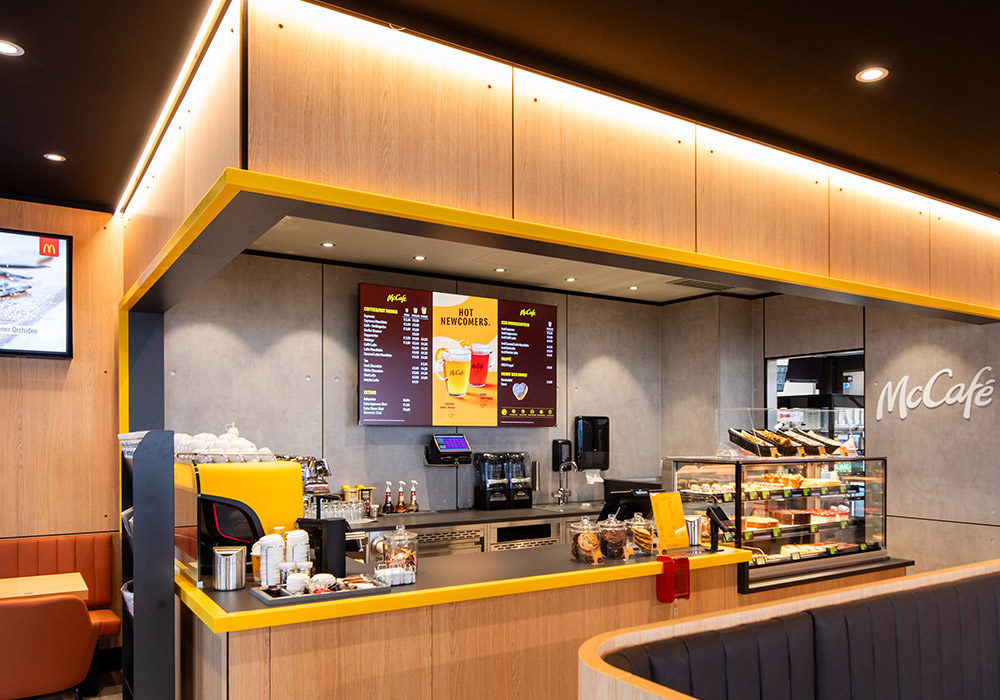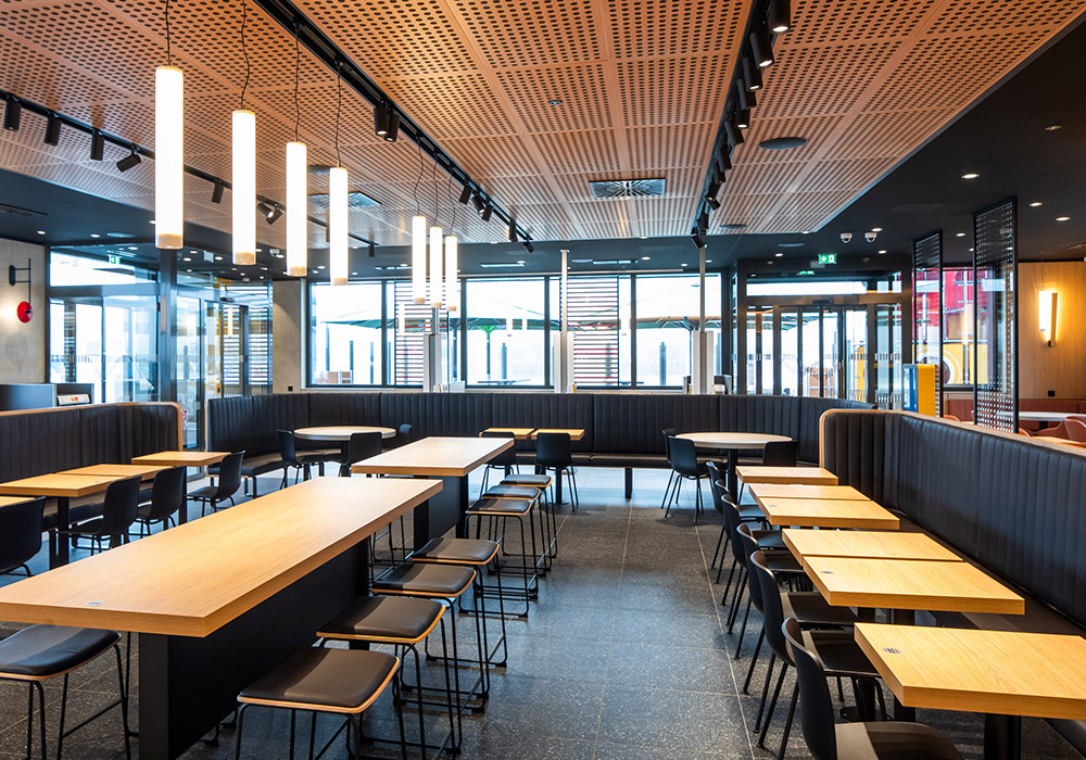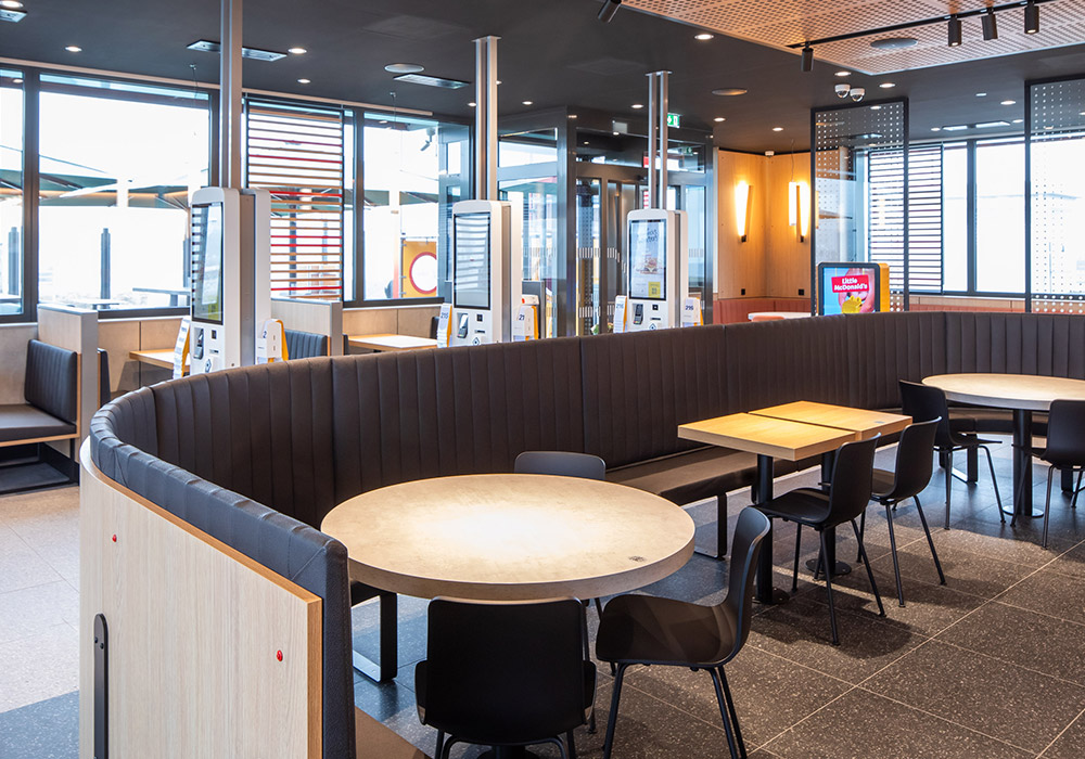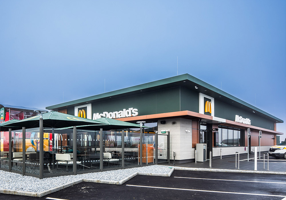 Neubau eines 1-stöckigen McDonald’s Restaurant mit Terrasse und McDrive –114 Sitzplätze im Gastraum, 58 Sitzplätze auf der Terrasse.