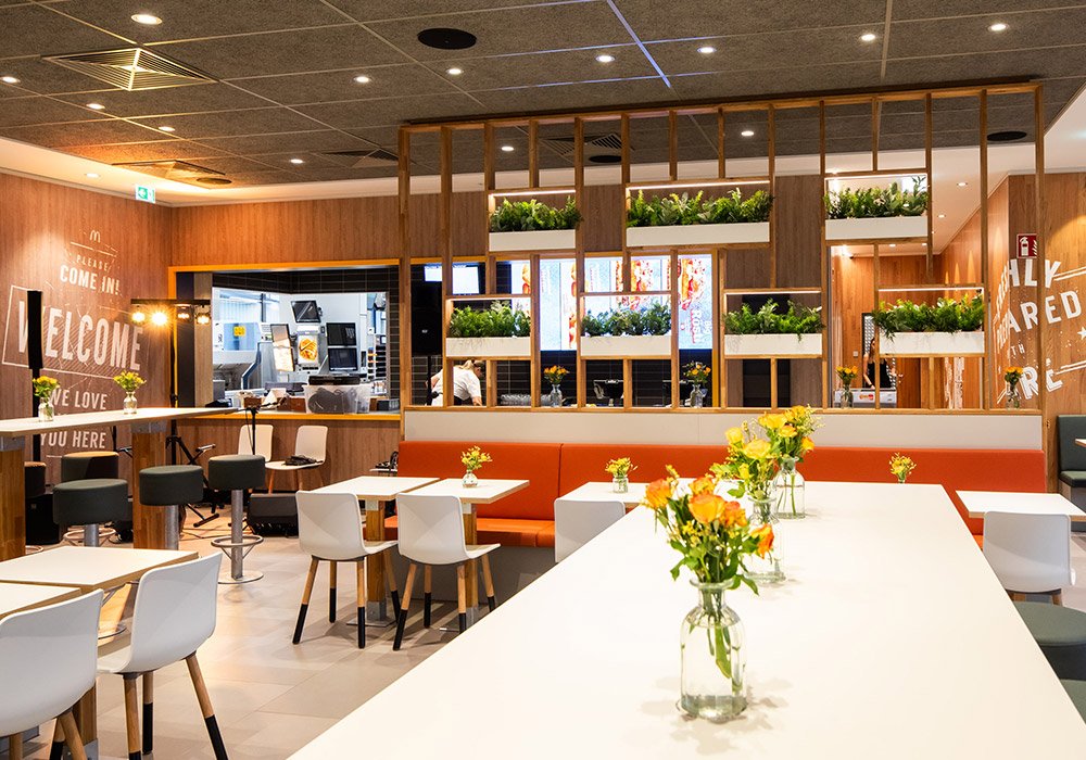 Neubau eines 1-stöckigen McDonald’s Restaurant mit Terrasse und McDrive – 96 Sitzplätze im Gastraum, 60 Sitzplätze auf der Terrasse.