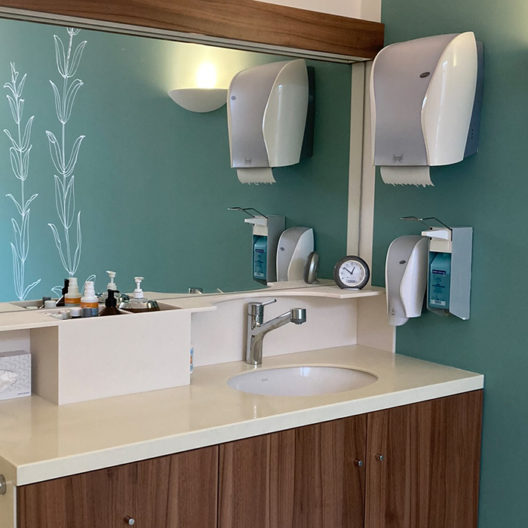Anpassung der Innenraumgestaltung an zeitgemäße Designvorstellungen unter Anwendung der Vorgaben des aktuellen Brandbooks. Das Wohlbefinden der Klienten steht dabei an vorderster Stelle.
